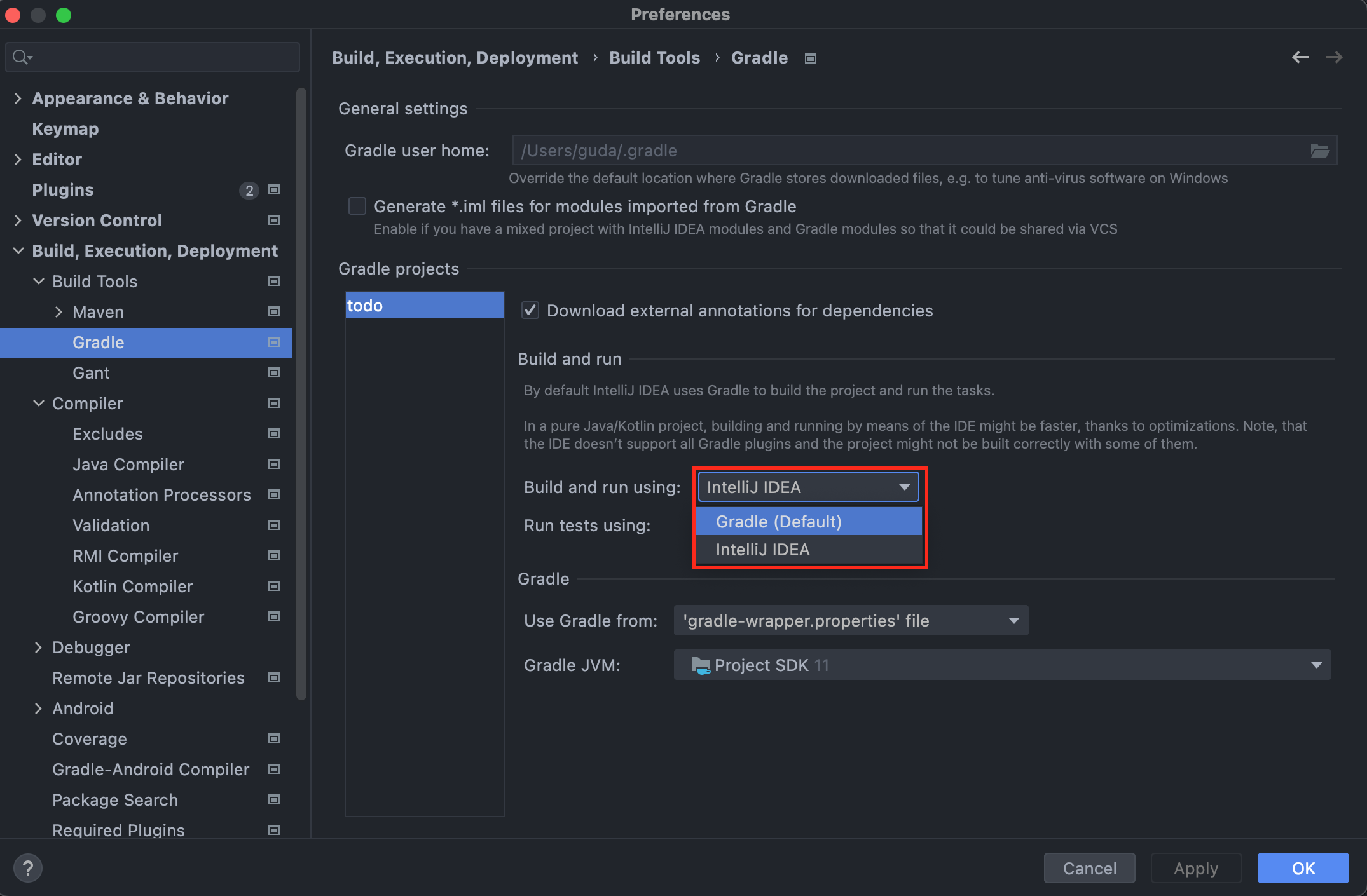 Gradle이 아닌 IntelliJ에서 인식하도록 어노테이션 프로세싱을 설정해 주자